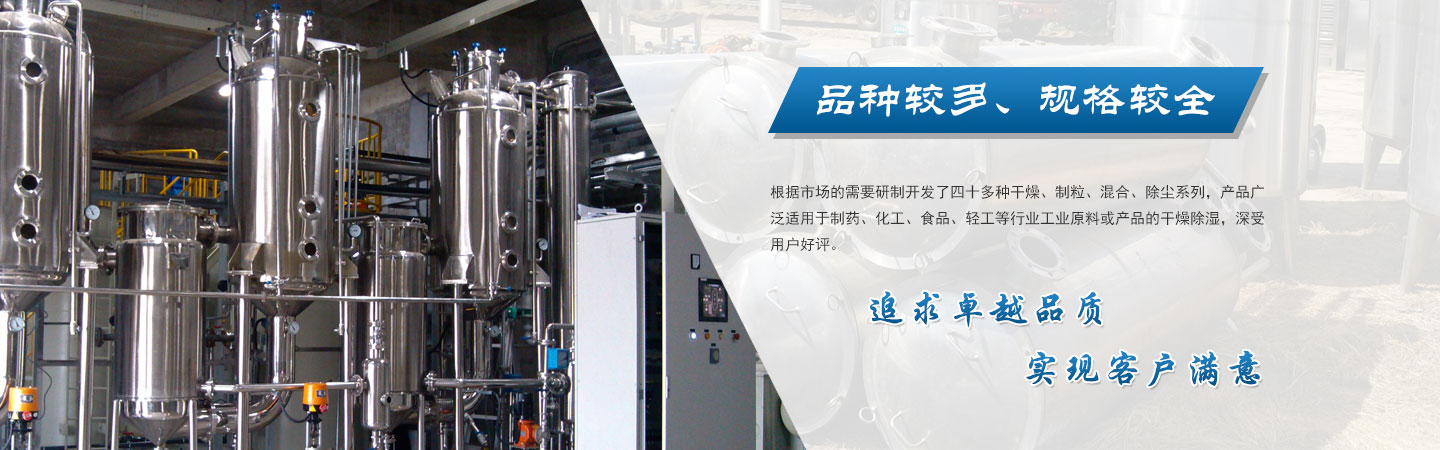 我公司吸收國內外的創新技術與經驗,嚴格按GMP的要求設計、開發、生產、安裝和服務于一體,同時嚴格按照ISO9001質量體系標準實施,確保了產品的質量。在干燥設備的開發、研究中不斷地創新及改造,設計制造了一系列工藝創新且節約能耗的產品。并根據市場的需要研制開發了四十多種干燥、制粒、混合、除塵系列,產品廣泛適用于制藥、化工、食品、輕工等行業工業原料或產品的干燥除濕,深受用戶好評。歡迎客戶帶料試驗和考察。
